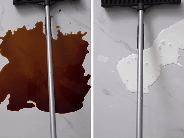 Le balai Anti-Poilfait bienplus que capturer les poils! Saraclette intégréevous permet d'éliminer facilement les liquides renversés ou les saletés humides,offrant un nettoyage complet enun seul passage.